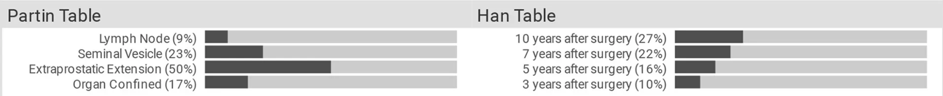 Partin and Han Table generated from clinic provided data to help determine the best treatment for each patient