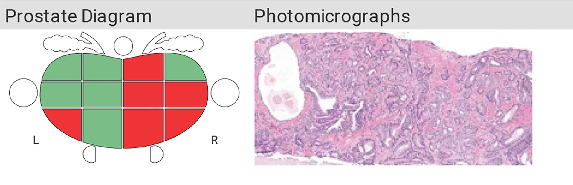 Color-coded prostate map & screenshot of an area of interest (taken by the pathologist during digital signout)